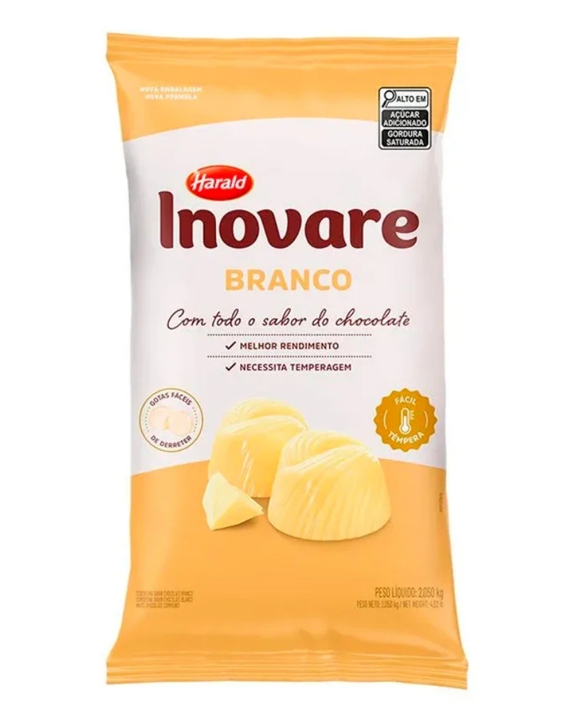 A nova embalagem e reformulação de 2,05 kg do Inovare em Gotas Branco é a escolha perfeita para quem produz bombons, ovos de Páscoa, trufas e pães de mel. Em formato de gotas, oferece mais praticidade durante o derretimento e a temperagem, além de ser ideal para quem busca um excelente custo-benefício.