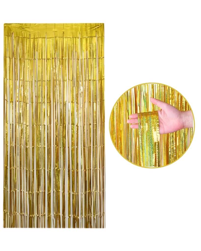 CORTINA DECORATIVA METALIZADA HOLOGRÁFICA 1X2m - DOURADA